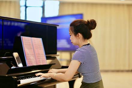 顺德职业技术学院ok138太阳集团古天乐留学美国钢琴表演专业的林静老师担任今天的钢琴伴奏。钢琴伴奏为今天的课程提供了最佳辅助,带来美妙感受,为学员们的表现增色不少。在《灯之河》中,钢琴伴奏如静谧夜空中的点点繁星,轻柔托着歌声,引领我们穿越黑暗。在《爱无限》里,它似无尽爱的呢喃,用细腻情感诉说美好,增添动人魅力。