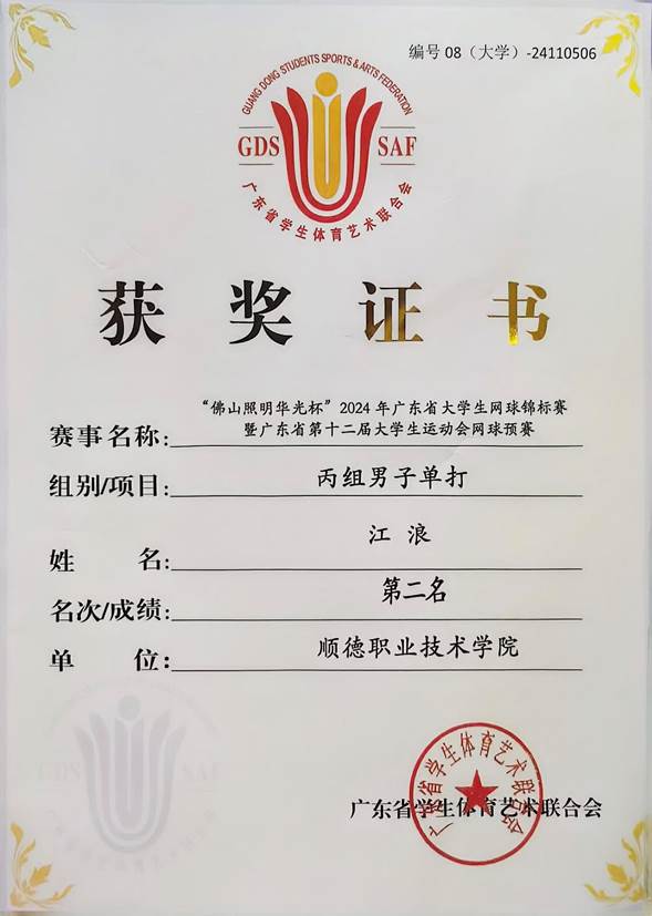 经过7天的激烈角逐,我校网球队在本次赛事中斩获佳绩。其中,男单选手江浪同学先后击败了包括往届赛事男单1号种子选手在内的诸多强手,荣获男单亚军。女单选手王雅璇同学以及女双选手谭思思、黄杏志同学也一路过关斩将,获得了明年广东省第十二届大学生运动会网球项目的决赛圈入场券。